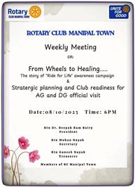On 08/10/2025 at 6:00 PM, Rotary Club Manipal Town conducted its we. . .