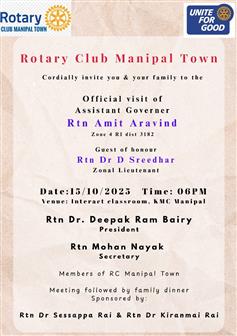 On 03rd October 2025 at 5:30 pm, the Rotary Club Manipal Town succe. . .